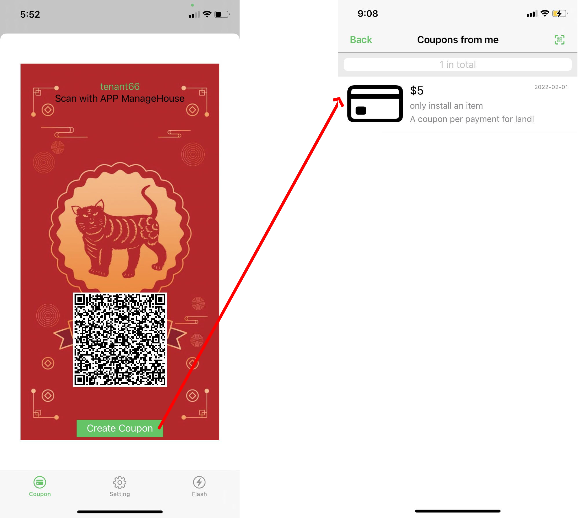 Step 3. User A will see the alert window showing up, click button create coupon.