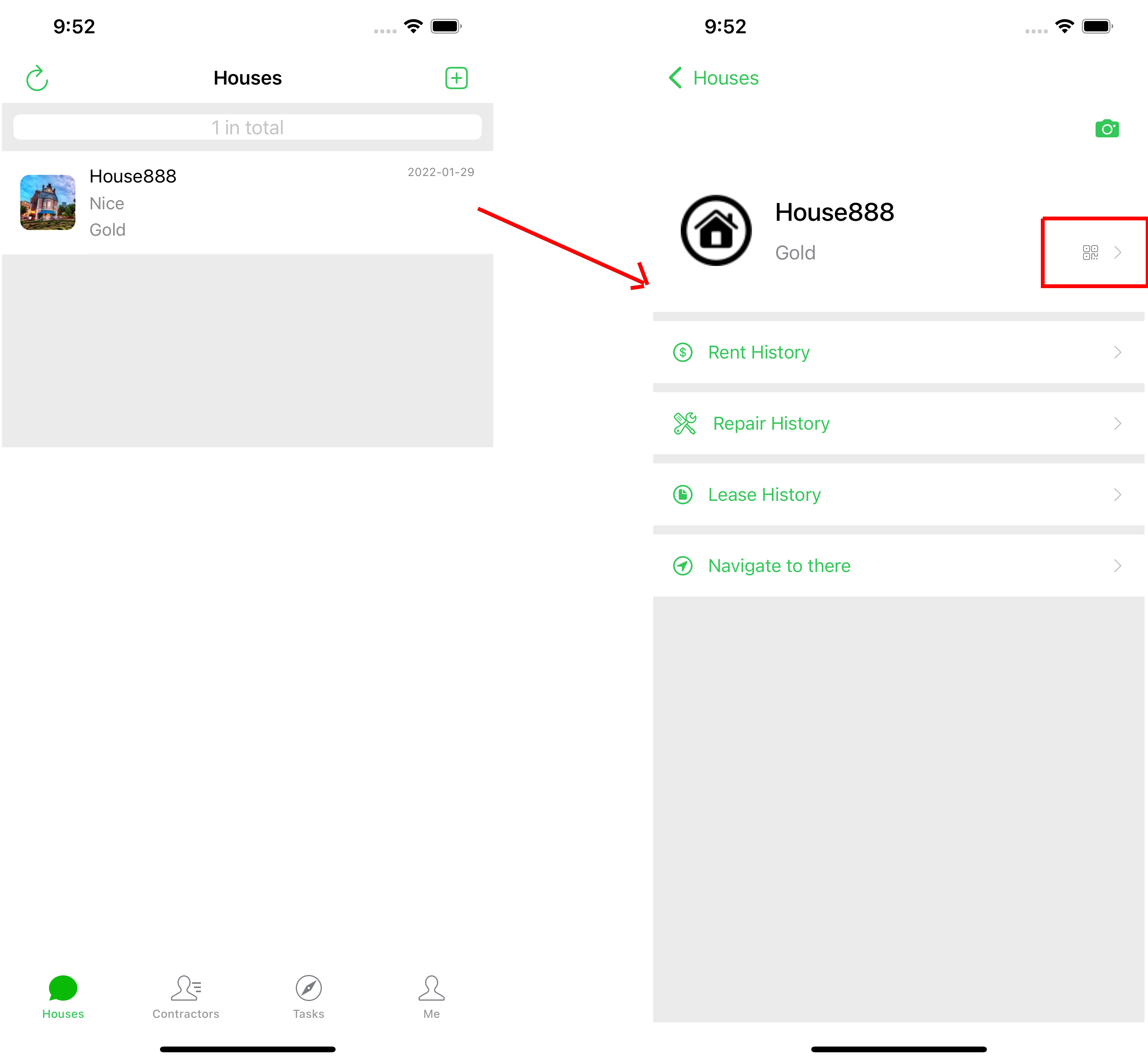 Step 2. Click the barcode button to check the house details.