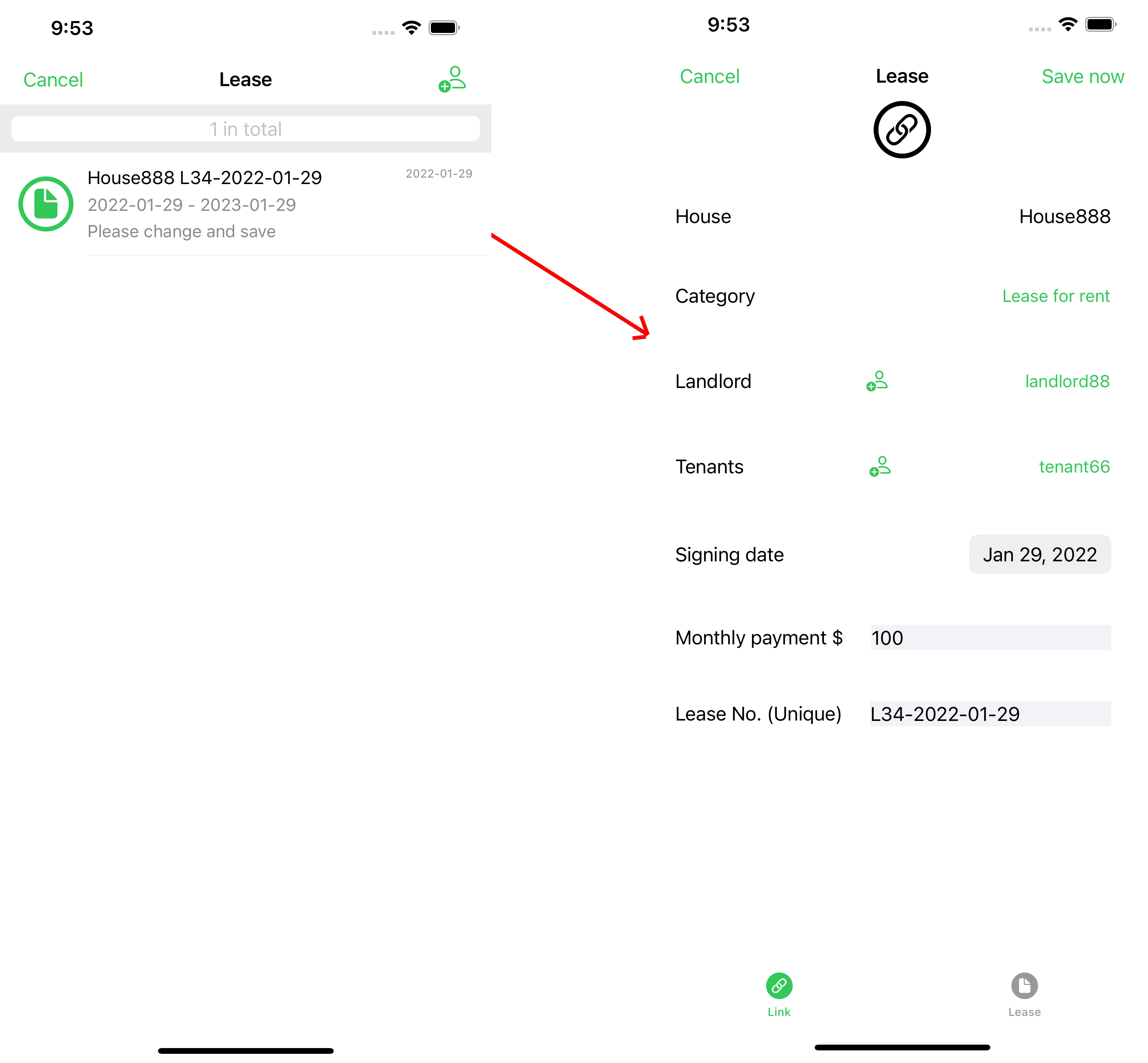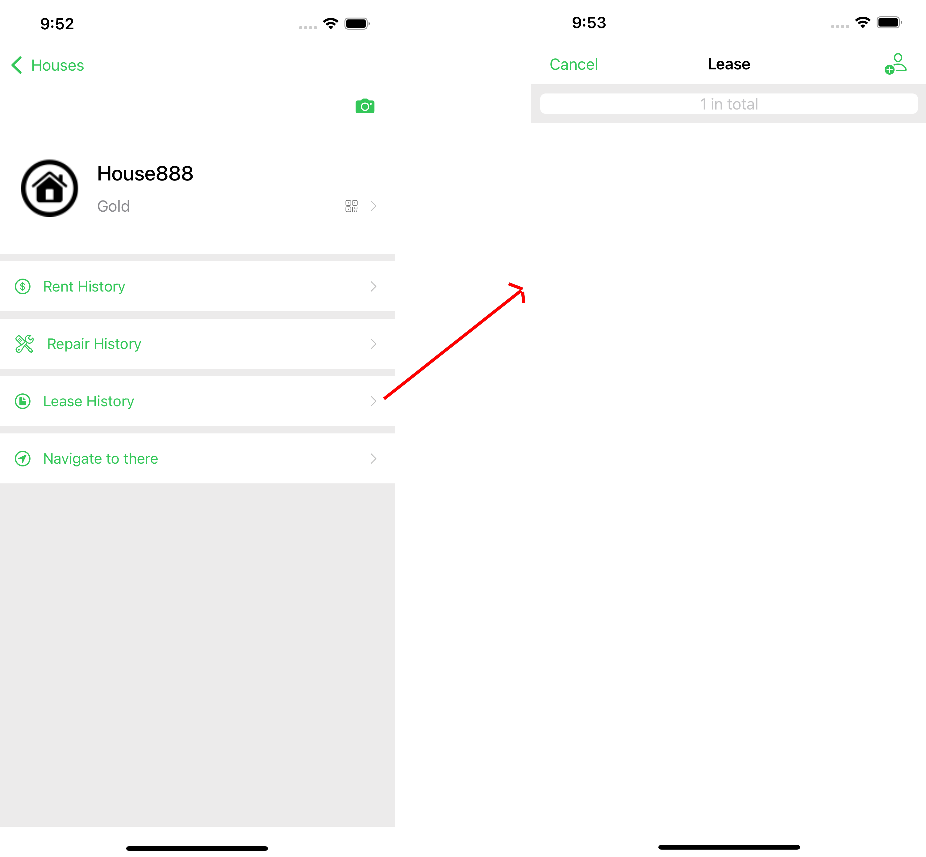Step 1. In the house menu page, click the lease history